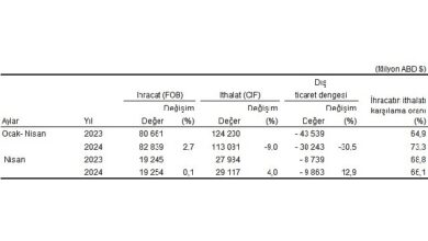 Tüik: Nisan ayında genel ticaret sistemine göre ihracat %0,1, ithalat %4,0 arttı