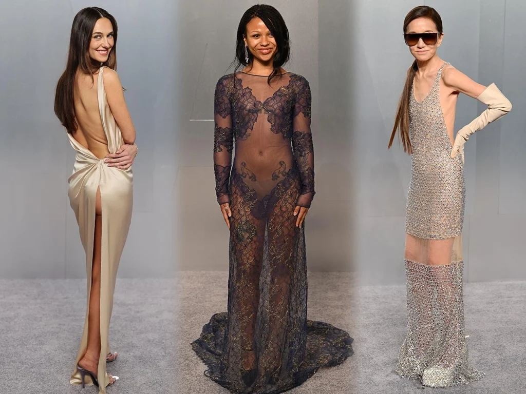 Tamamen yeni olmayan bu akım, 2026 Vanity Fair partisinde yeniden güçlü biçimde öne çıktı. Dantel, tül, file ve şeffaf panellerle desteklenen tasarımlar; doğrudan açıklık yerine illüzyon yaratan bir stil dili kurdu. Woman.ru’nun değerlendirmesine göre Vera Wang, Lizzo, Renate Reinsve, Alessandra Ambrosio ve Alison Brie gibi isimler de bu çizgiyi farklı formlarda taşıdı. Bazı görünümlerde çıplaklık etkisi astarla yumuşatılırken, bazı tasarımlarda ise kesim ve kumaş seçimi daha baskın bir iddia yarattı.